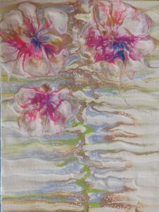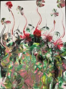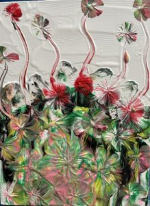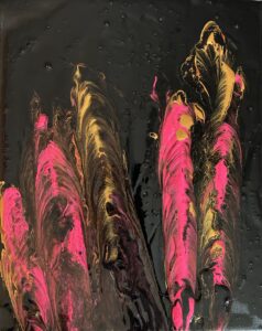 You can see the magical wet works and after drying effects of pouring,swiping in black and white background and blowing techniques with balloon kissing in each artwork here.